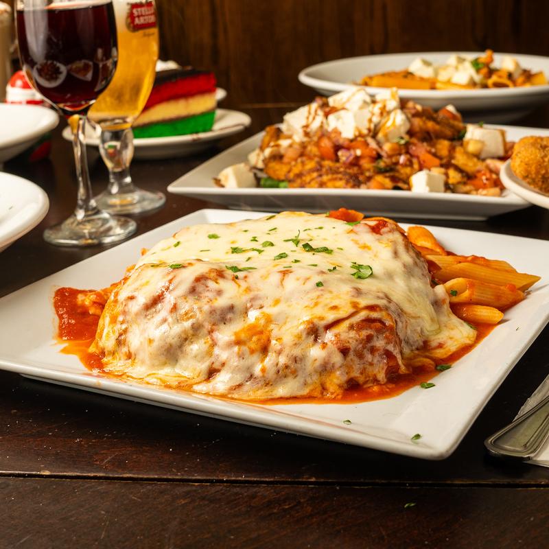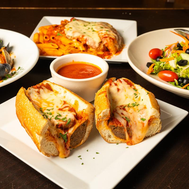 Choice of 1 entree - Chicken Parmigiana, Chicken Francese, Chicken Marsala, Meatballs & Sausage, Eggplant Parmigiana